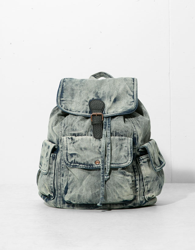 Stonewashed denim backpack, Bershka